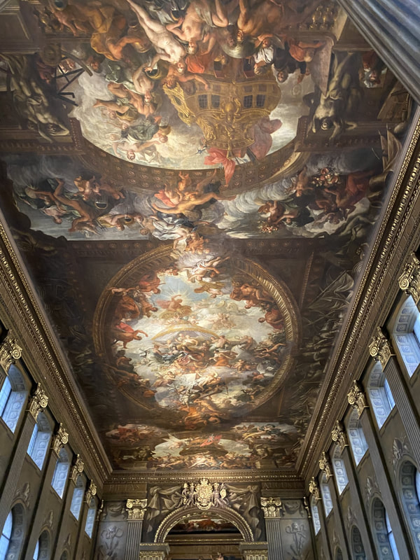 I spent a wonderful eight years as a trustee of the Old Royal Naval College Greenwich https://ornc.org/, where I oversaw the fundraising for the visitor centre and witnessed the cleaning and restoration of the west wall. It was great to return and see again the splendour of the Painted Hall and the magnificent ceiling and to bid farewell to Tony Hales as Chair of the Trust. Greenwich is definitely worth a visit. As a Past Master of the Plaisterers’ Livery, I have to laud the plasterwork by another Past Master, Henry Doegood. Without his exceptional work, the painting would have literally collapsed years ago.